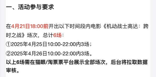 如《機動戰士高達 跨時之戰》上映期間,路畫影視(發行)就通過微信小程序來徵集“影院成團”,向那些滿足排片條件的影院寄送特典,將其列為特典影城作為宣傳,算是一種鼓勵影院增加排片、拓展特典發放範圍回饋粉絲的新策略。