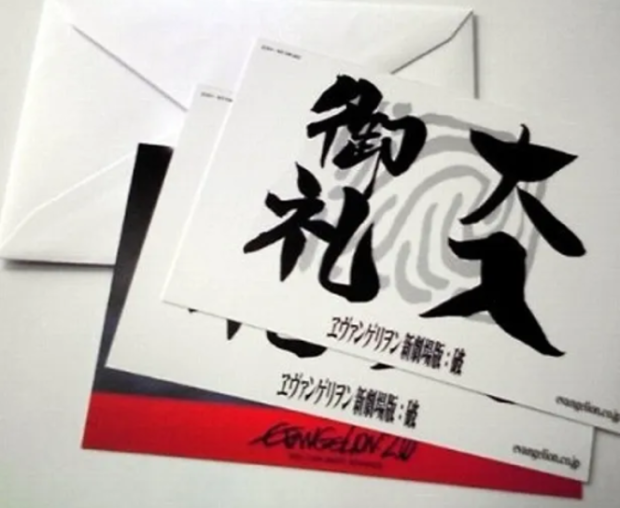 《破》的感謝卡特典,信封中的毛筆字由鶴卷和哉導演書寫