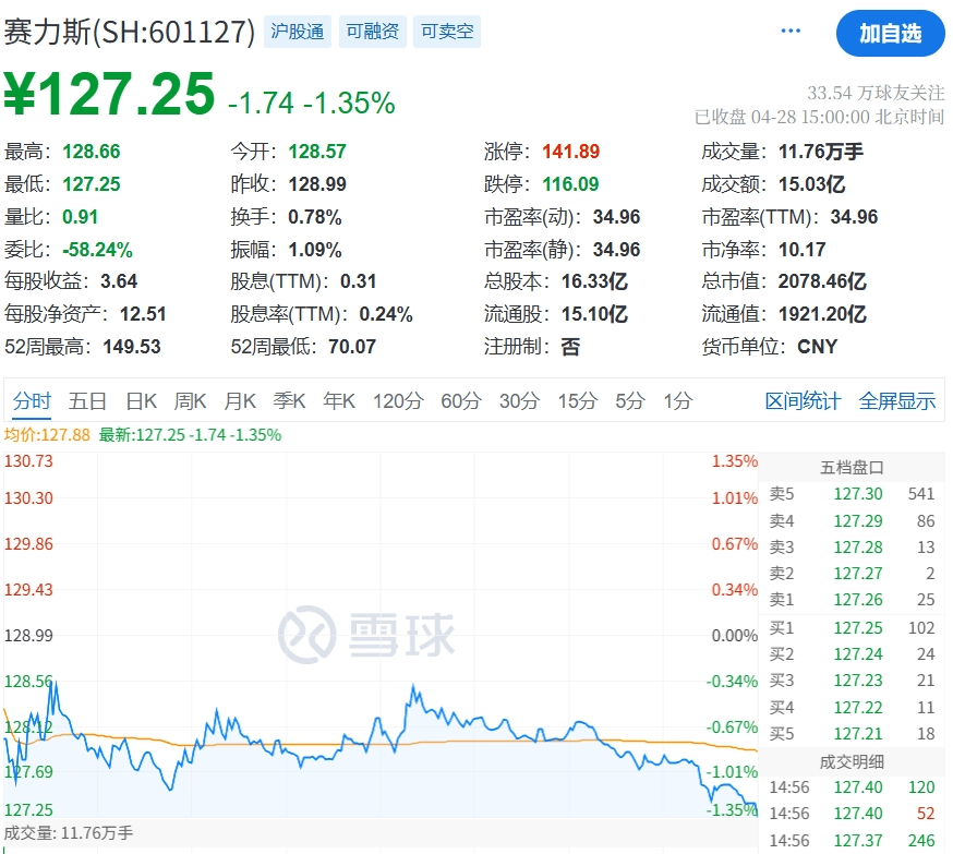 當前賽力斯在A股的市值為2078億元(4月28日收盤),PE為35倍,那麼在港股上市,賽力斯能拿下多大的估值呢?尤其是在過度依賴華為等可能導致發行價下調10%-15%。