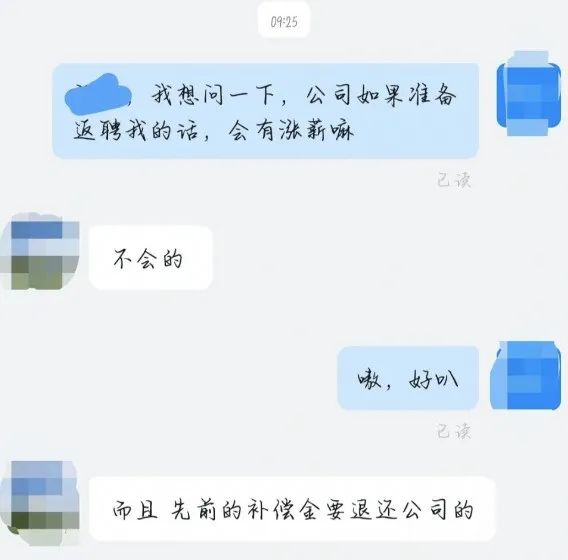 薪資還按原標準,不用退賠償金,相當於拿着賠償金放了個長假後,又回到了正軌,有種天上掉餡餅的喜悦。