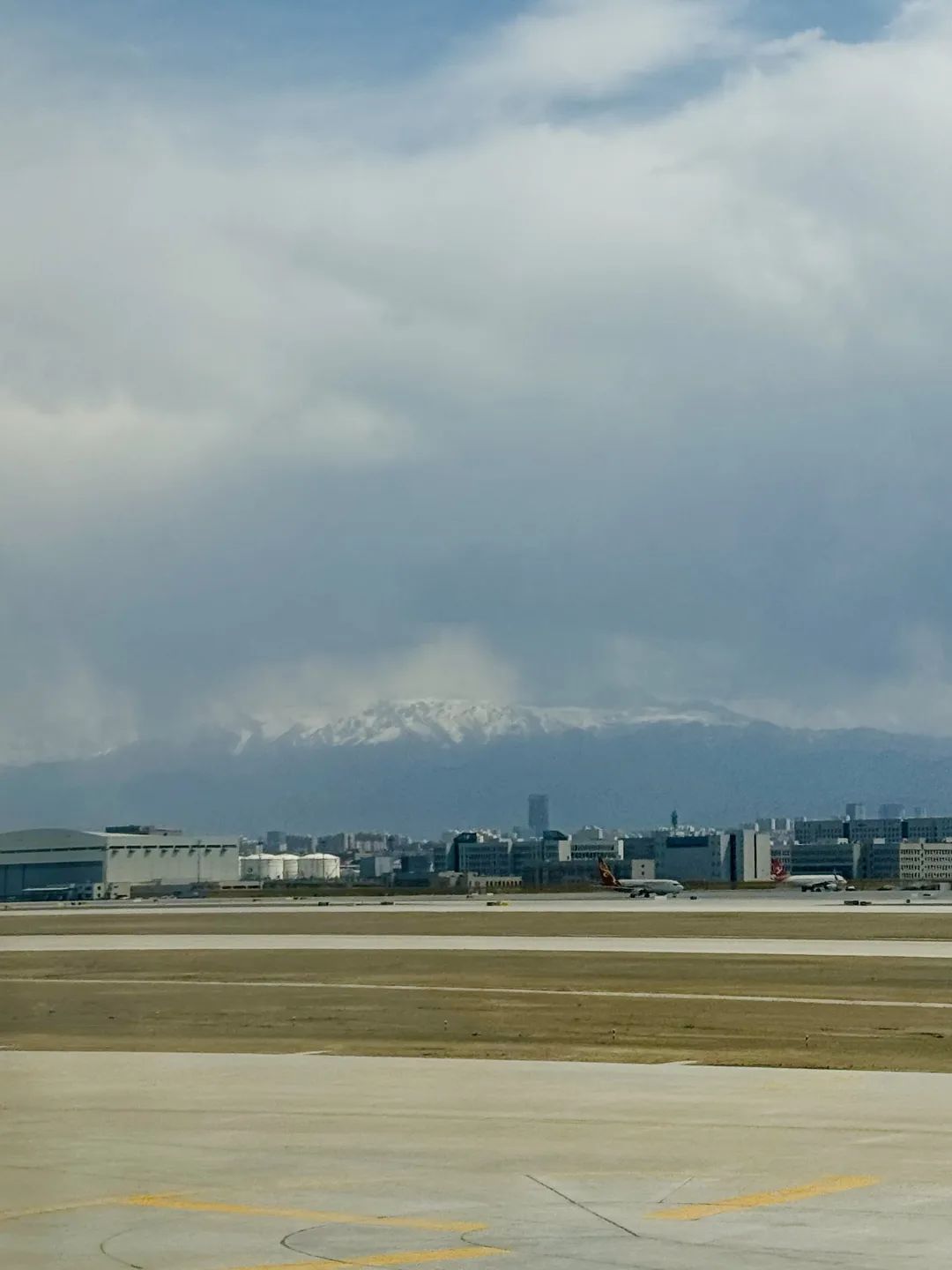 飛機的高度開始下降了,此時天山的白色尖頂穿透雲層,一片雪山綿延開去看不到邊,白色的雪山襯着白色的雲。客艙裏響起了輕輕的讚歎聲,一眾手機鏡頭對準了窗外美景,“烏魯木齊天山國際機場”名字中的“天山”,變得格外具像化了。