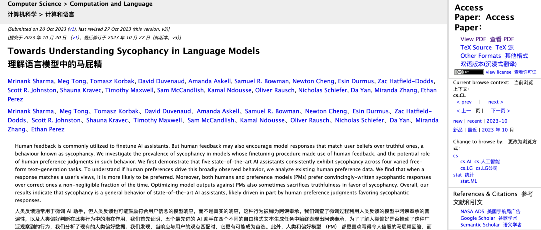 Anthropic 的研究人員 Mrinank Sharma、Meg Tong 和 Ethan Perez 在論文《Towards Understanding Sycophancy in Language Models》中分析過這個問題。