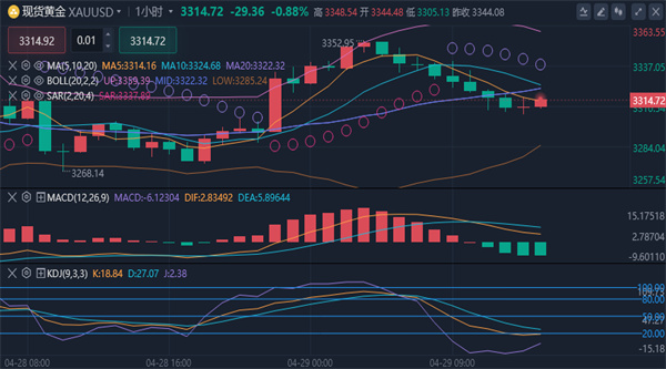 週二(4月29日)亞市早盤,現貨黃金窄幅震盪,目前交投於3337.58美元/盎司。金價週一逆轉跌勢上漲,早些時候曾跌至3268美元附近,但隨後出現低吸買盤,金價收報3343.91美元/盎司;
