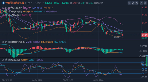 從日線級別走勢來看,WTI原油自65美元附近回落,目前已跌破重要支撐位62美元,整體趨勢偏空。短期內5日、10日均線形成死叉,並持續壓制油價下行,20日均線拐頭向下,中期弱勢格局顯現。技術指標方面,RSI(14)位於40附近,處於弱勢區域,但未進入極端超賣,顯示油價仍有進一步下行空間;MACD指標綠柱動能持續放大,雙線呈現向下發散狀態,強化了空頭主導局面。目前WTI下方重要支撐位看向60美元關口,若跌破將進一步打開下探空間至58.5美元附近,而上方初步壓力位則在62.5美元。整體來看,WTI短期偏弱運行,反彈受限,若無重大利好刺激,油價大概率延續震盪下跌走勢。全球原油市場正面臨雙重打擊,一方面貿易擔憂情緒抑制需求增長,另一方面供應端有望加速增加,雙向壓力導致油價短期內承壓明顯。配合WTI日線技術面分析,油價短期存在繼續測試60美元甚至更低支撐位的風險