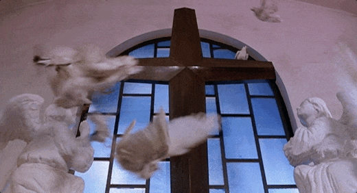 片種詩意的慢鏡頭,打不完的子彈,橫飛四射的血漿,都是吳宇森標誌性的美學風格。