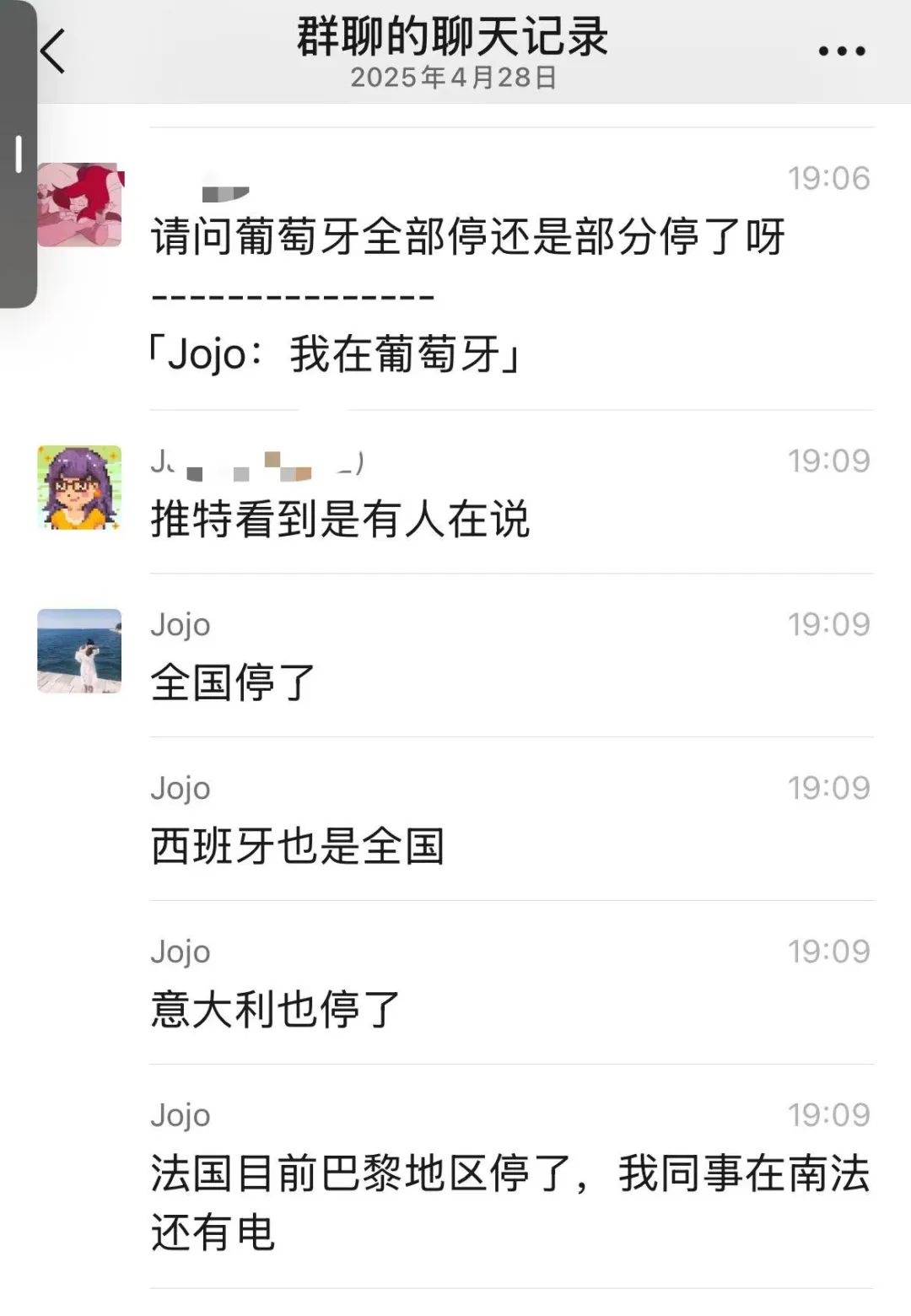 隨着4月28日這則聊天記錄瘋傳,側面得知西班牙大停電事件似乎導致了連鎖反應,不僅西班牙全國停電,由於歐洲有很多interconnection電網,南歐的意大利和法國也受到了波及。