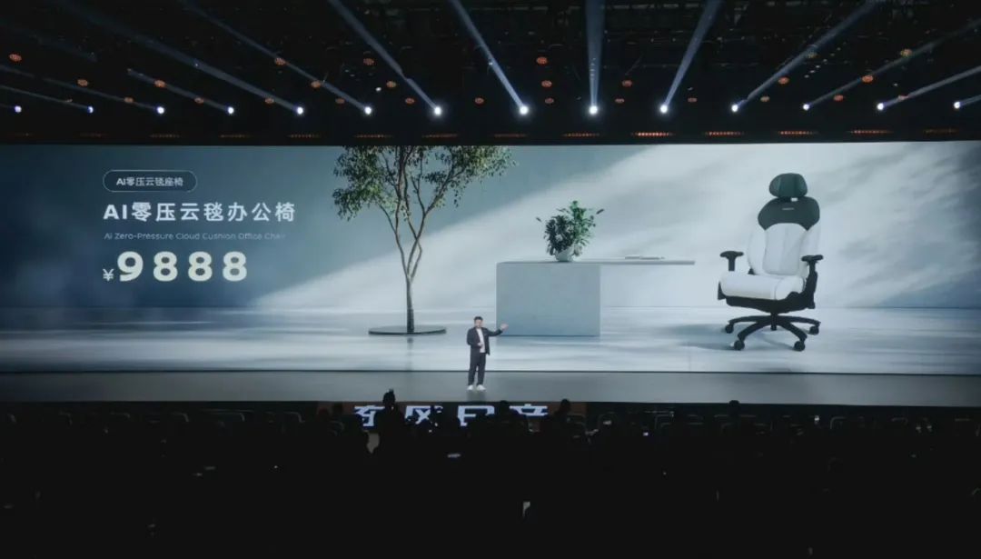 在發佈會上,東風日產發佈了一款尺寸比天籟略大的純電動新車——日產N7,售11.99萬元起,同時還將N7賣點之一的前排“大沙發”裝上輪子,推出了一款帶通風加熱按摩以及電動調節的辦公椅,售9888元。