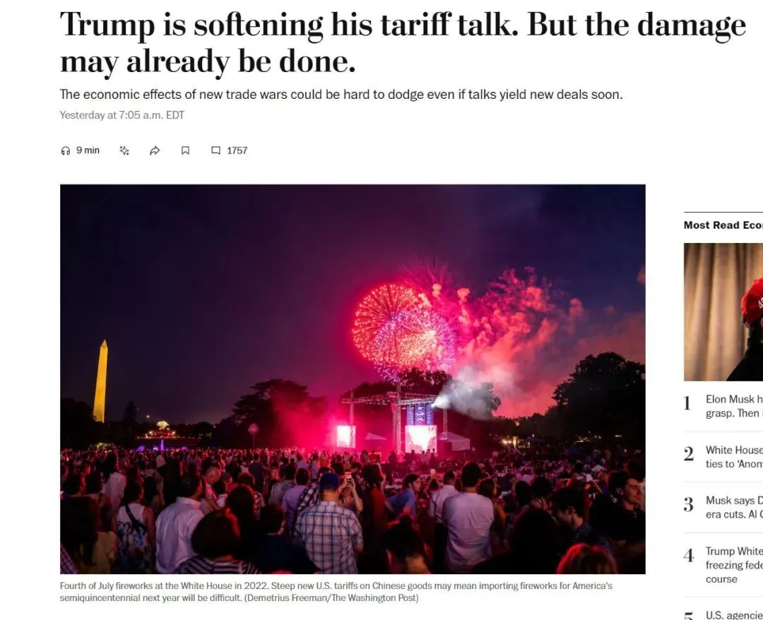 她向記者表示:“如果關税不鬆動,今年7月4日的慶祝活動可能見不到煙火,更別提250週年了。”