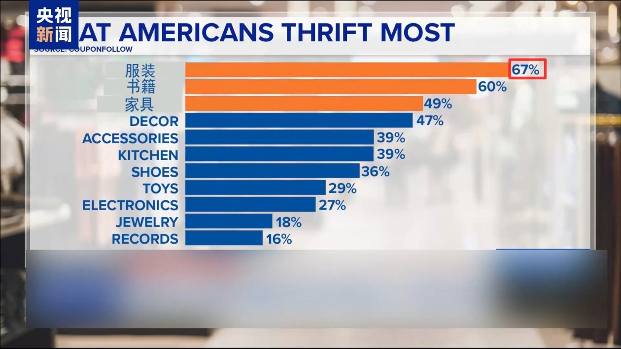 美國一家在線交易平台(CouponFollow)的一組調查數據顯示,67%的美國消費者選擇在二手市場購買服裝,60%的人購買書籍,近50%的人購買傢俱。