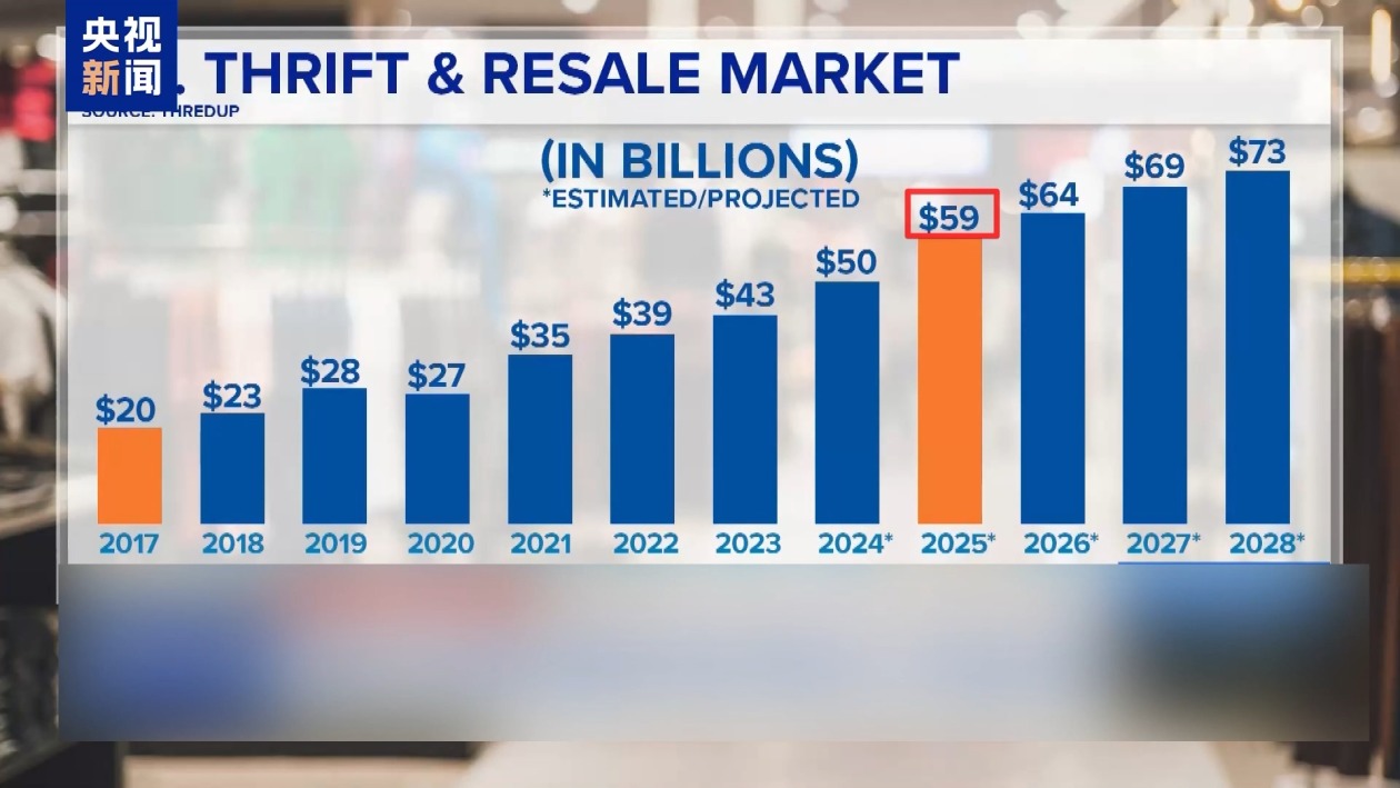 美國二手商品交易在線平台思雷達普公司的數據顯示,2017年美國二手交易市場的價值只有200億美元。根據該公司的預測,受關税政策影響,2025年二手交易市場價值將升至590億美元,此後也將一路飆升,照此發展2028年的價值將達到730億美元。