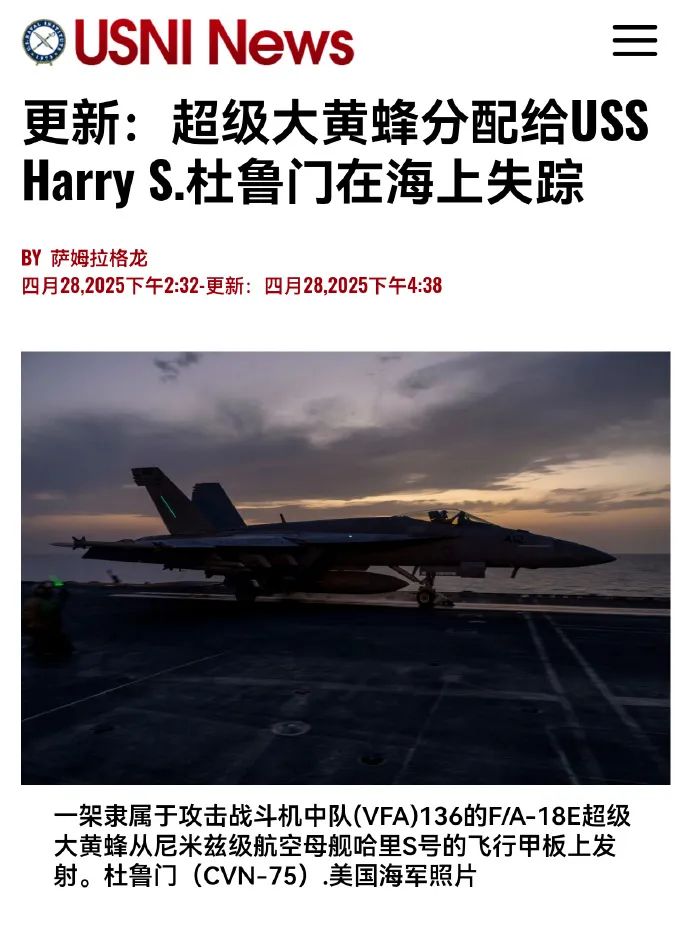 所以説,這事兒從本質上來説……屬於美國海軍自己幹活不小心,規避胡塞武裝打擊的時候,把一架艦載機玩到海里去了?那這四捨五入之後,好像也可以算是胡塞武裝達成的間接戰果。其含金量甚至比去年年底美國海軍的那次誤擊時間含金量要高。