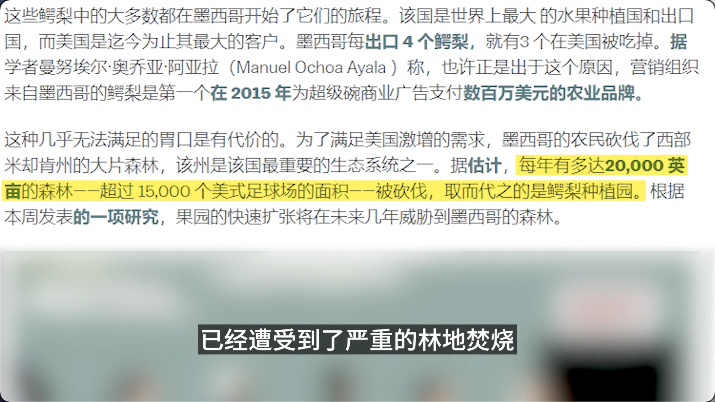 在中國,牛油果的進口量從2010年的2噸暴增至2022年的4.3萬噸。新式餐廳爭相推出牛油果沙拉、奶昔,健身博主宣稱它“比肉更健康”,卻很少有人提及:每顆牛油果需要消耗272升水,墨西哥種植區因過度開採地下水導致地震災害頻發。