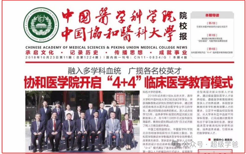 原來協和有個制度——“4+4”學制模式。2018年9月,北京協和醫科大學正式開始“4+4”學制,號稱是學習美國的先進制度,只要四年的醫學專業學習,就能拿到醫學博士學位。