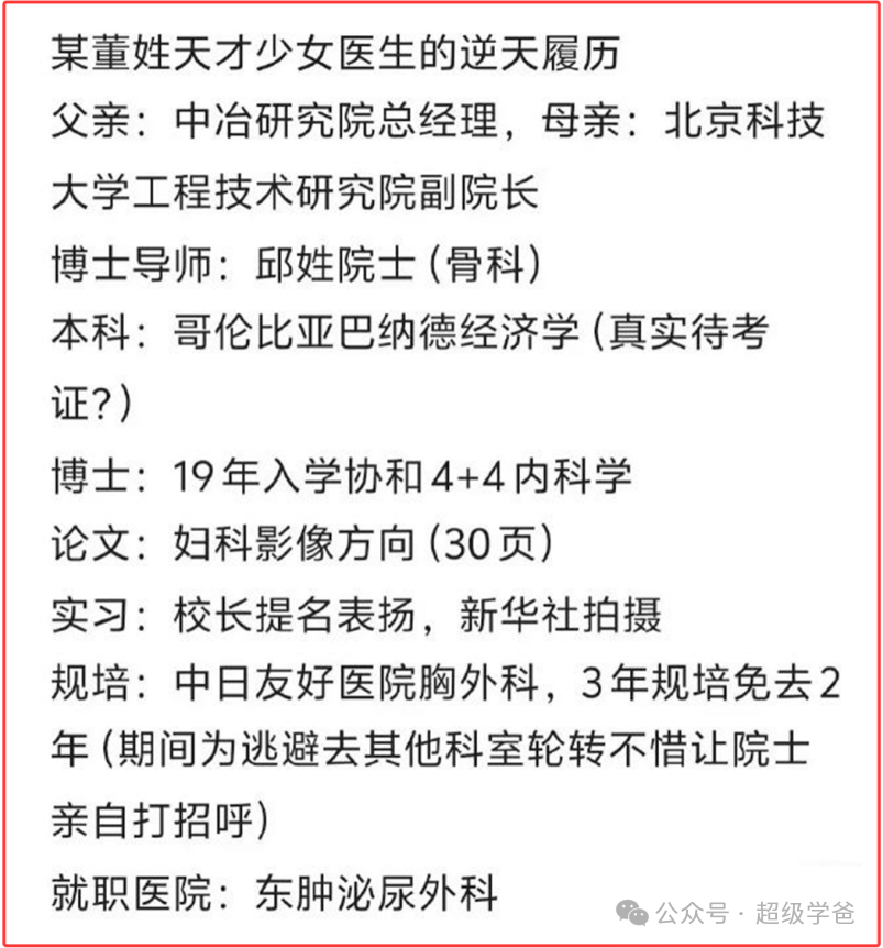 有了專家的推薦,不管您之前是學的是西班牙語、學新媒體的、學園藝的,都能登堂入室,進入醫學最高殿堂學習。而這樣的推薦信,對董襲瑩這樣的家庭來説,簡直是太容易了。