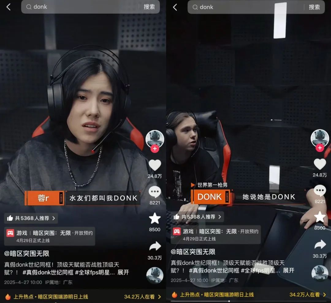 具體來講,此次受邀的,除了暗區自己的主播隊,還有前不久才在電競賽場上針鋒相對的綠龍(Team Spirit)和天祿,以及各類FPS遊戲主播組成的“拼好槍”隊,其中包括曾被稱作“亞一狙”的DANK1NG、因長相酷似CS2明星選手Donk而在“遊戲”“顏值”雙賽道自如切換的Ronk——這又何嘗不算FPS圈子的“仙之人兮列如麻”。