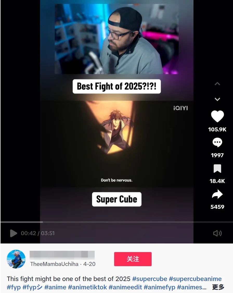 由愛奇藝動漫與快看漫畫出品、大火鳥文化製作的《超能立方》,在國內外社交媒體收穫了大量關注。不僅在抖音、B站、微博等平台,引發動畫愛好者對中國業內2D製作技術水平的探討,甚至X上《超能立方》單條切片播放量突破了1100萬,YouTube、TikTok平台也有觀眾直言“我認為它貢獻了年度最佳打戲”。