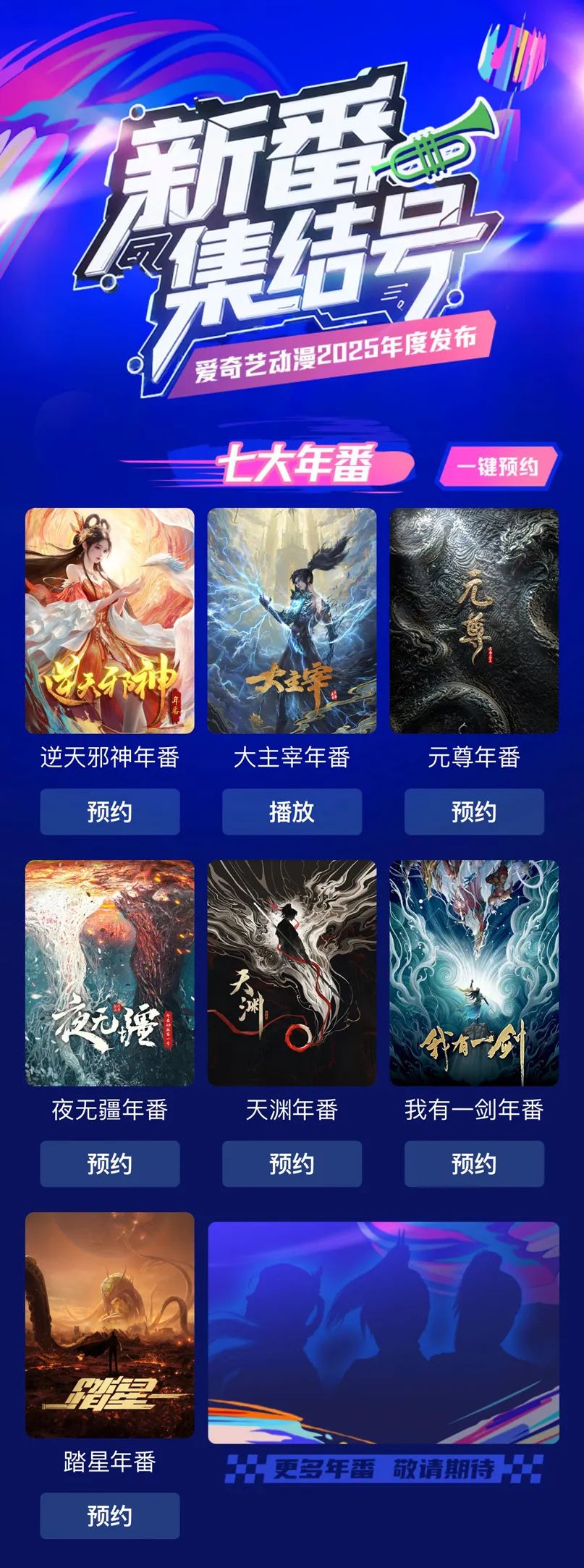 至於未來,愛奇藝更是下定決心深耕精品化動漫,要兼顧年番的長線陪伴,和季番的優秀品質。剛剛落幕的愛奇藝世界大會上,官方公佈的2025年度片單,包含了7部年番和33部季番。