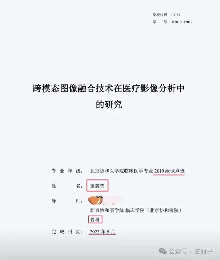 2021年,董小姐作為第二作者,在《中華醫學雜誌》刊發了《第551例 吞嚥困難—胸腔積液—後縱隔囊腫》的文章。該文章所分析的患者於2020年收入北京協和醫院,2021年3月手術完成,當時小姐入學僅一年左右。