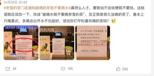 顯然,並不是,而是奈雪的茶覺得如今淡水資源不夠了,市民應該節約用水,把水留給孩子,其他人能喝奶茶就別喝水了!