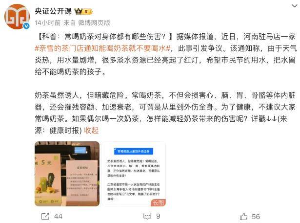 單看這個話題,作為一家知名的商業品牌,難道研究出了全新的顛覆認知的科學結論?奶茶要成為對人體比水更重要的東西?