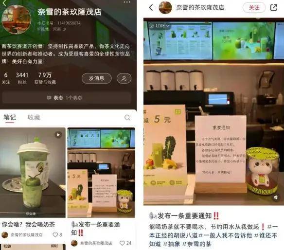 而值得注意的是,這則通知不僅擺在奈雪的茶門店顯眼的位置,在奈雪的茶門店的社交媒體上官方賬號上,更是大張旗鼓的傳播。
