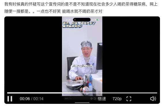 「我有時候真的懷疑寫這個宣傳詞的是不是不知道現在社會多少人喝奶茶得糖尿病,網上隨便一搜都是。。一點也不好笑 能喝水就不喝奶茶才對」