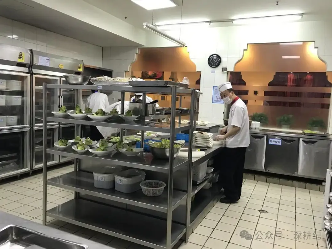 我一開始在廚房粗加工實習乾的活很單調,早上去了就是擇菜,洗菜,整天面對着幾十斤、上百斤的蔬菜,有菜心、生菜、娃娃菜這些常見蔬菜,蔬菜加工崗一般兩個人,一個阿姐和一個實習生。其他人則準備些砧板上需要的食材,這時候粗加工的老大是不怎麼幹活的,由年輕一些的主管帶着實習生幹,甚至時間久了,那些活實習生自己就能幹完。到了快十點,一個實習生會跟着老大去拿貨,那些貨就是昨天下單定的廚房裏各部門要的物資,有蔬菜、肉類、海鮮和一些輔料等。上午的貨到了粗加工和樓上的廚房差不多就開始忙起來了。剛去廚房的實習生,在工作上不如一般老員工熟練,特別是砧板,對刀工有要求,幹不好,教個一遍兩遍學不會,老師傅真叼你。有的廚師確實脾氣不好,説話兇,好罵人。我也聽説過有的廚師打實習生、學徒的事,但我是沒有碰到過。