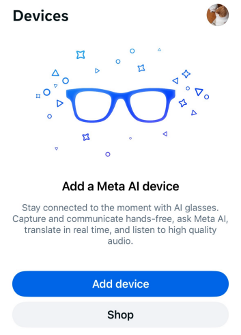 Meta AI的“生態化反”還有一個體現,是用户可以在應用裏綁定AI硬件,可選擇的有Meta的兩款雷朋AR眼鏡。