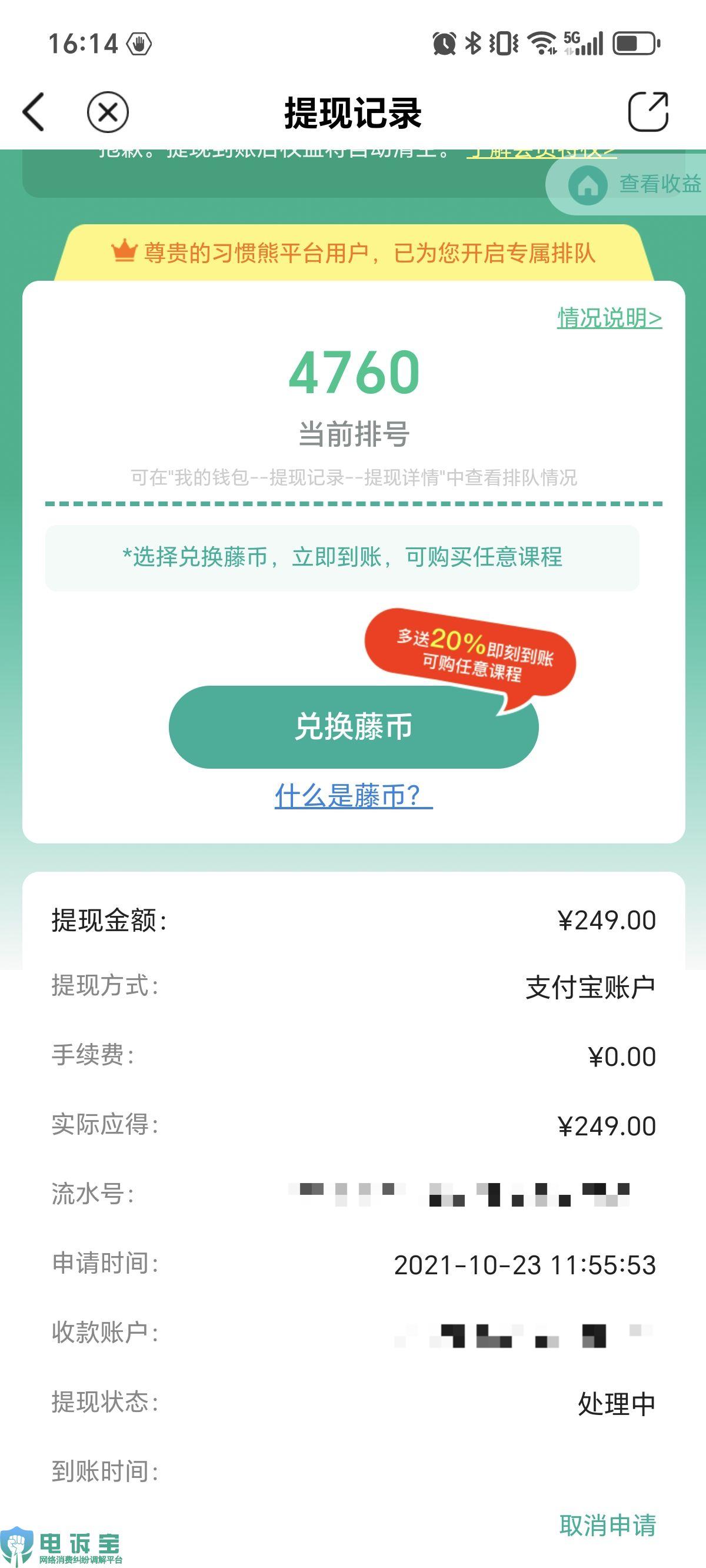 4月22日,內蒙古自治區的劉女士向“電訴寶”投訴稱於2021年5月16日在常青藤爸爸APP軟件中購買了動畫版親子英文課打卡返現課活動。同年10月19日,她完成了打卡提交,隨後進入提現排隊流程。然而,直至目前,提現事宜仍處於排隊狀態。據劉女士反映,經過多次與客服溝通,對方始終以排隊提現為由進行推遲。如今,提現隊列中仍有4760人排在劉女士之前,且距離她完成打卡已過去數年,退款遲遲未能到賬。