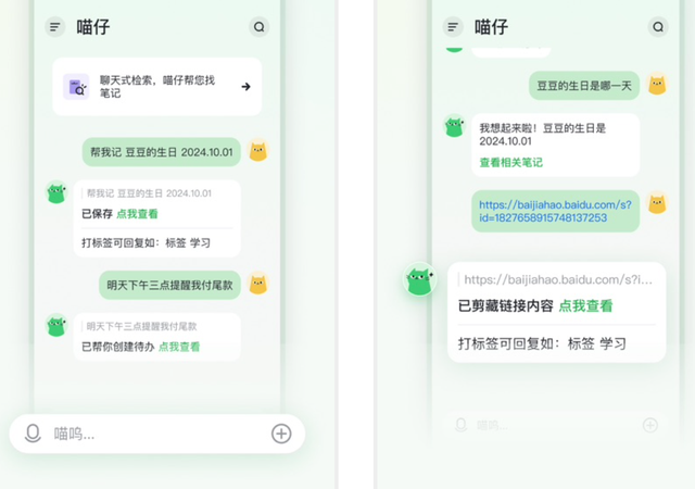 如果發送給喵仔的是一個網頁的“超鏈接”,喵仔還會自動爬取對應的網頁內容作為一篇新的筆記。
