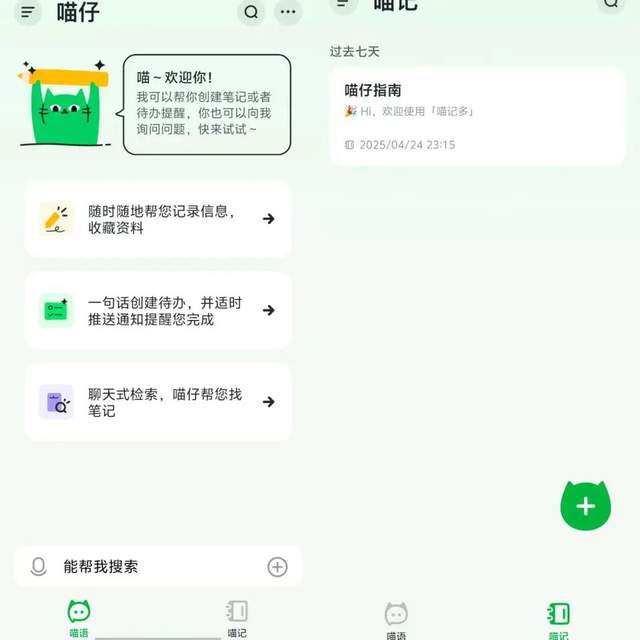 讓喵仔直接幫忙把文字記錄成筆記,可以直接通過以下方式給喵仔發消息:記筆記內容。如果用户向喵仔發送的是“圖片”或者“文件”,喵仔會自動幫用户收藏到筆記中長期存儲。