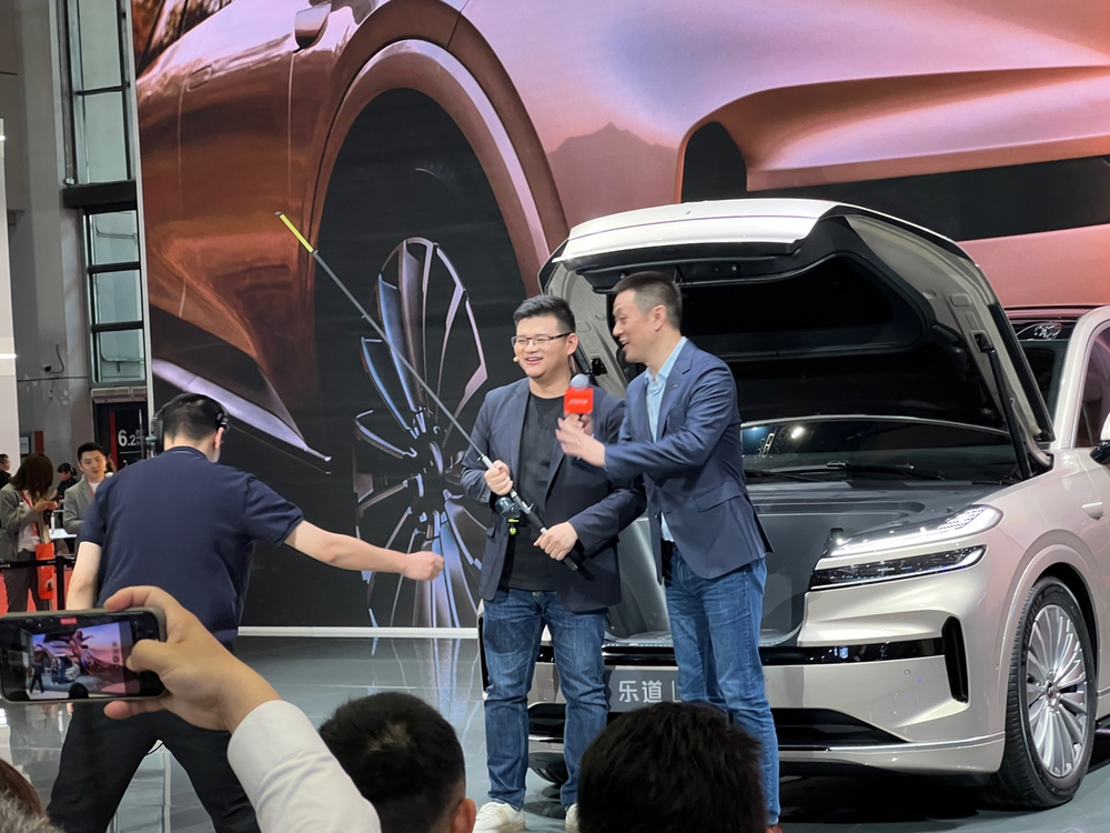 樂道則首發了其第二款車型、智能大空間旗艦SUV——樂道L90,“超大前備艙”是該車的核心亮點,空間容量達到240L,封閉式前格柵可與前備艙一同打開,開口寬度達到830毫米,可放下一個30英寸的大型行李箱。在介紹樂道L90的裝載能力時,蔚來汽車創始人及CEO李斌還坐到了前備艙裏演示了釣魚。
