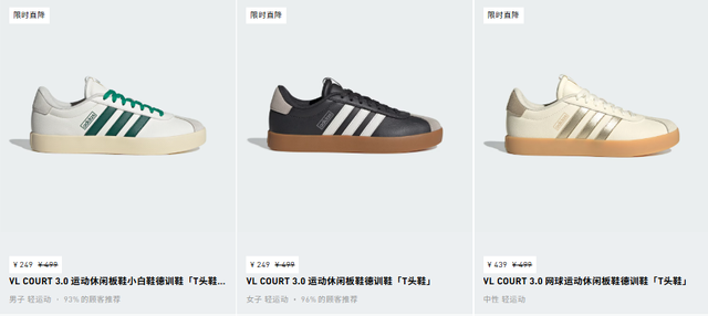 毫無疑問,Samba是促使阿迪翻身的主力產品,而其定價維持在1000元以下,促銷折扣下,部分款式可達300-600元一雙,威脅斯凱奇舒適價格帶;其平替版本VL COURT系列也乘勢而起,200-500元的主力區間,直接殺入斯凱奇的舒適區。