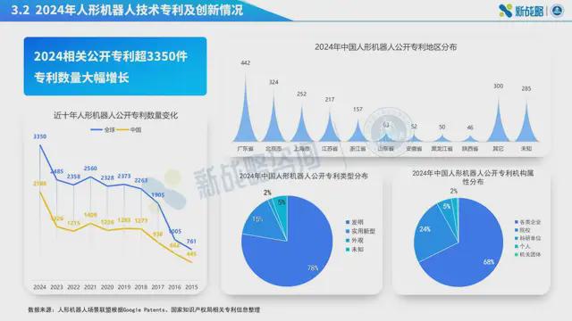 在技術專利方面,根據相關統計,全球人形機器人相關專利申請總量已經超過了2.5萬件。2024年,全球公開人形機器人相關專利申請數量已超3350件,其中,2024年中國人形機器人相關專利公開數量超2188件,創下了新高。這一數據表明,中國在全球人形機器人領域的技術創新和研發投入已經處於領先地位。