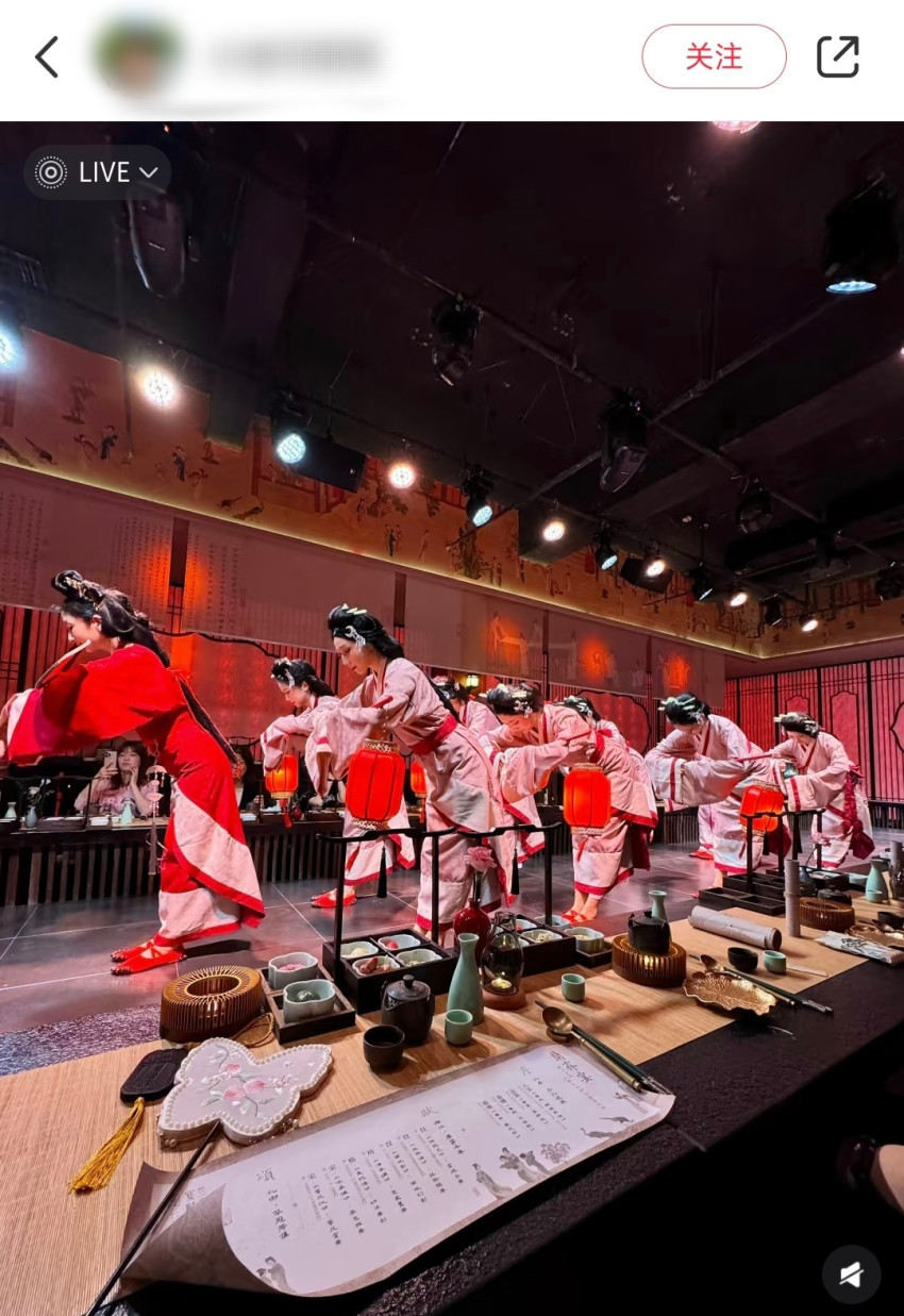 據不少前去打卡的網友分享,消費者預訂成功後,通常會額外花費100 - 200元前往餐廳內的“妝造司”換裝化妝,隨後便開啓一場“宮宴之旅”。在長達兩小時的用餐過程中,消費者還能夠同時觀看舞台上古色古色的節目表演,可以説是體驗感滿滿。