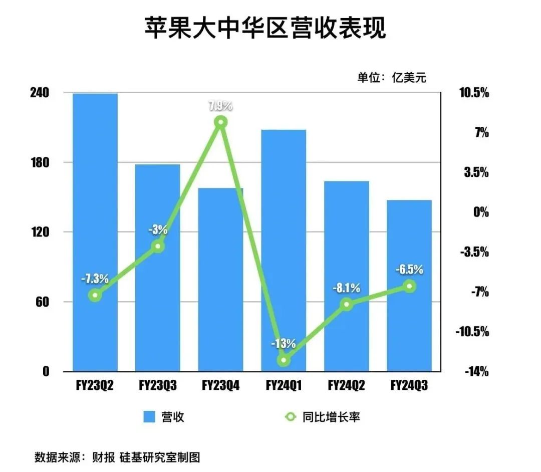 以蘋果為例,**2024年其營收為1243億美元,其中,大中華區收入為185.13億美元,佔總收入的14.9%。**早在2023年,庫克就曾表示,中國已取代美國成為iPhone全球最大單一市場。