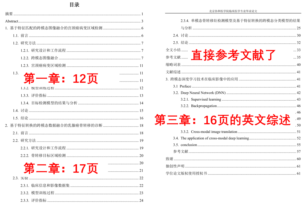 後面那個16頁的第三章,是一個英文綜述,並不是她的科研成果。我不太瞭解醫學領域,是醫學博士論文固定就有這麼個環節,還是説不加這個綜述的話論文打印出來的厚度不足以在書脊上寫題目?