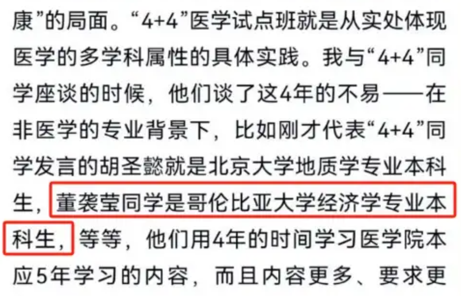 在協和官方通稿中,董小姐是作為優秀案例出現的。哥大經濟學本科、4+4醫學試點班、畢業成為協和醫學博士,名校海歸+協和博士光環拉滿!但深挖一下發現根本經不起深挖啊!