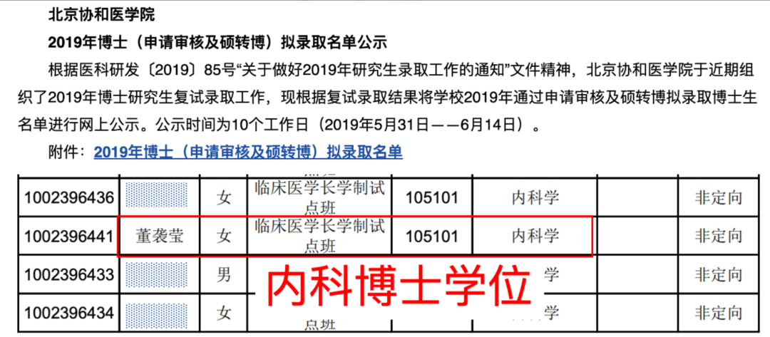 關鍵董醫生學得咋樣呢?她2019年到2023年在協和經歷了4年醫學博士培訓,普通醫學生動輒8年或者5+3+4共計12年的學醫路,她4年就走完了,還包括疫情時期,不知道她學醫上不上網課。