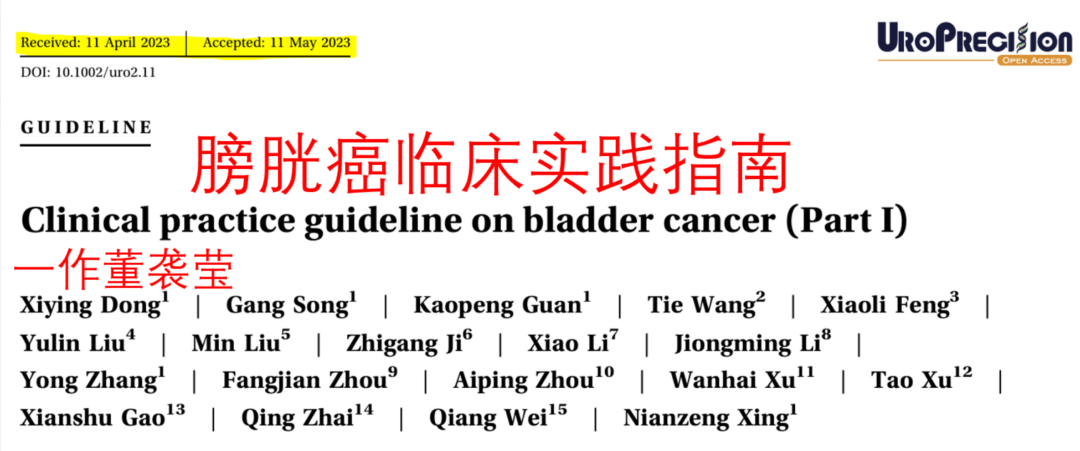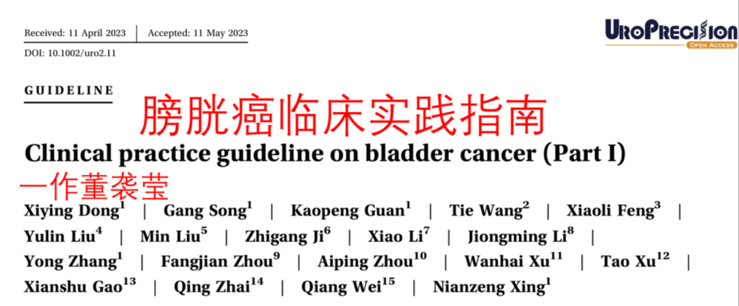 而這篇她以第一作者身份發表了《Clinical practice guideline on bladder cancer 》也很有趣。董襲瑩作為一個2023年5月才畢業的學生,在同年的五月,居然就成為了這篇膀胱癌臨牀實踐指南的一作。對董小姐來説,真是一個豐收的五月啊!