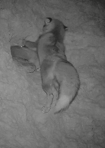 研究人員做了個很有趣的實驗,慢慢地走向兔猻,結果兔猻有43%的幾率奔向最近的洞穴,30%站住不動用保護色隱蔽(萌混過關!),還有21%跑到多岩石或峽谷的地帶。可見洞穴對它們躲避捕食者至關重要。更有趣的是,還有兩次人們觀察到戴無線電項圈的雌兔猻和雄兔猻共處一個洞,從傳出來的聲音可以判斷,它們在交配。