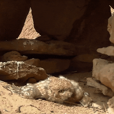 躺在岩石陰影下乘涼的縱紋腹小鴞,即使是一個陰涼也可以提供關鍵庇護所