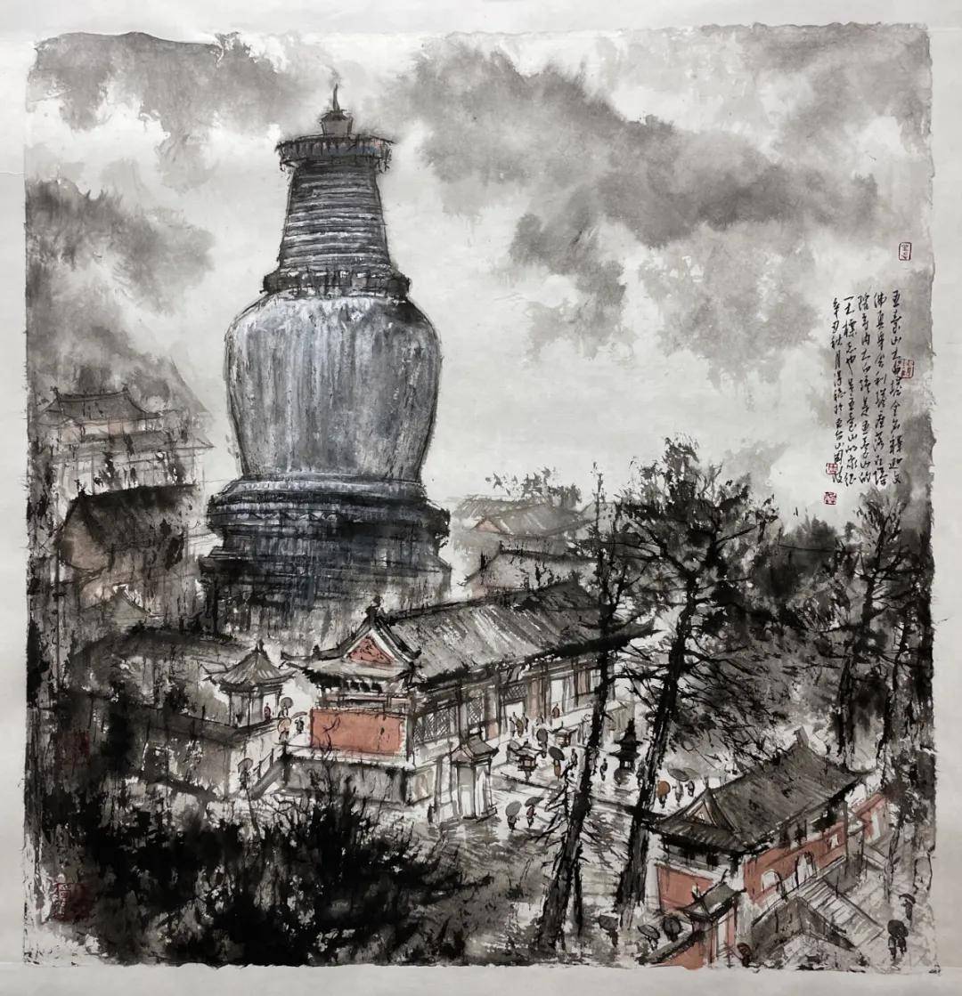 周波《五台山大白塔》 68cmx68cm 紙本水墨設色 2021年