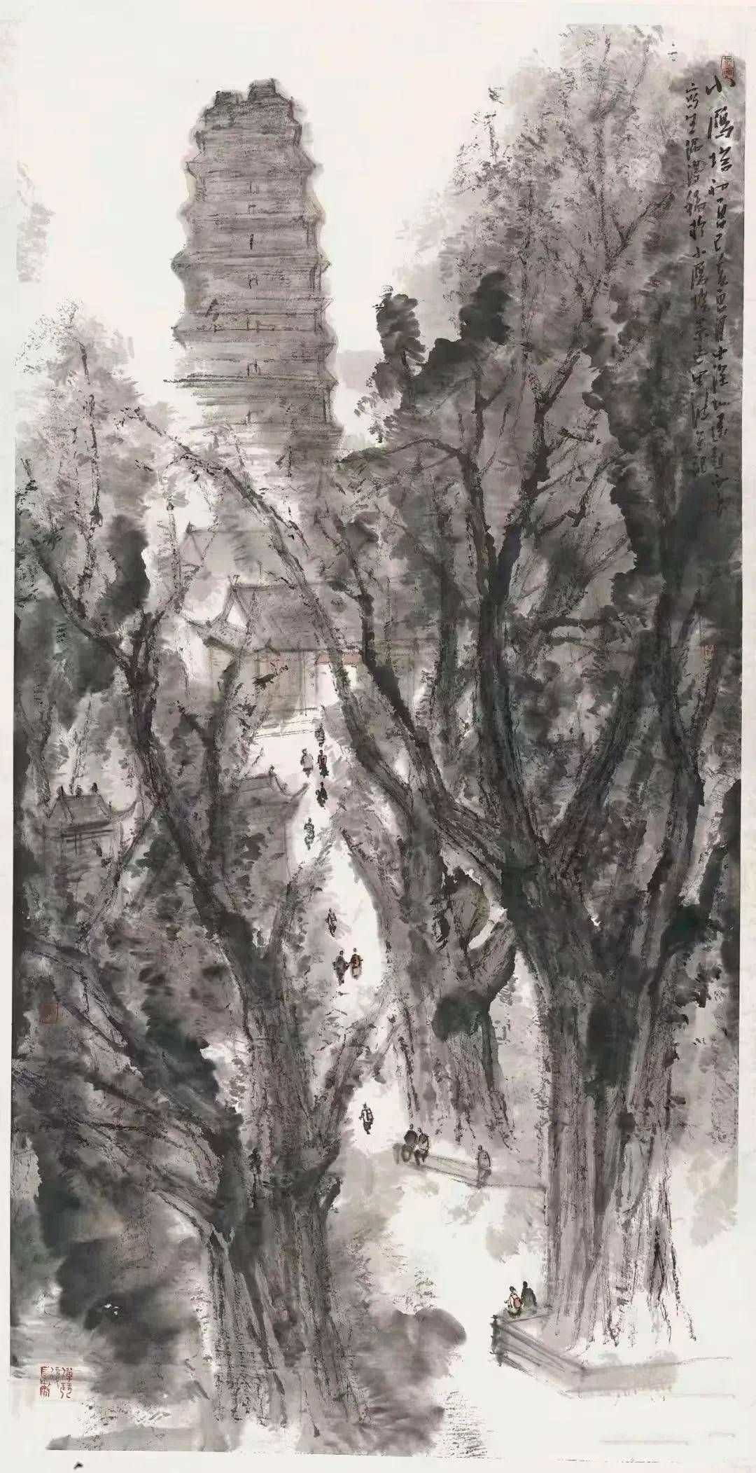 周波《小雁塔初夏》 136cmx68cm 紙本水墨設色 2019年