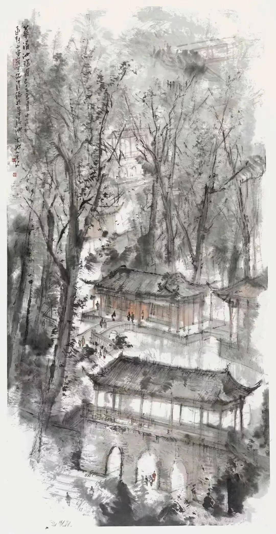 周波《西安華清宮》 136cmx68cm 紙本水墨設色 2019年