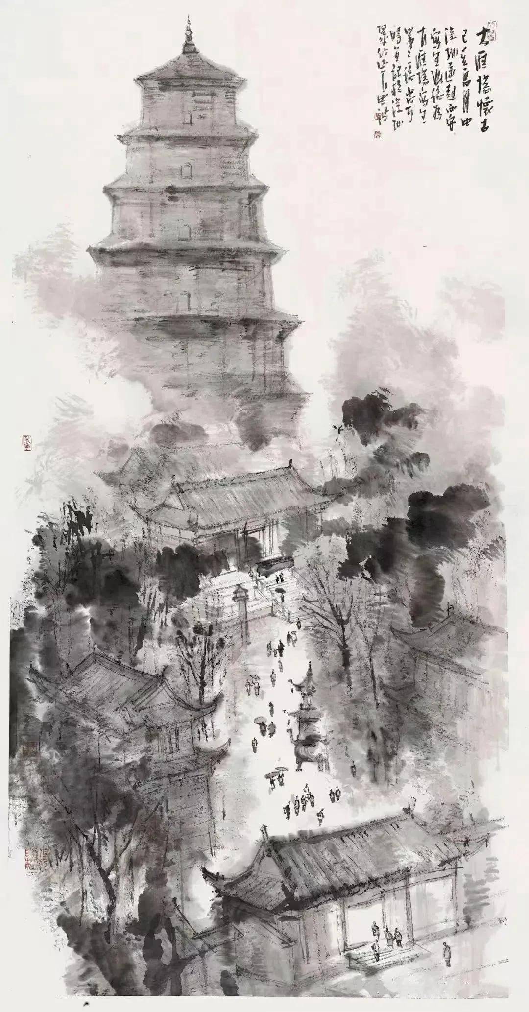 周波《大雁塔懷古》 136cmx68cm 紙本水墨設色 2019年