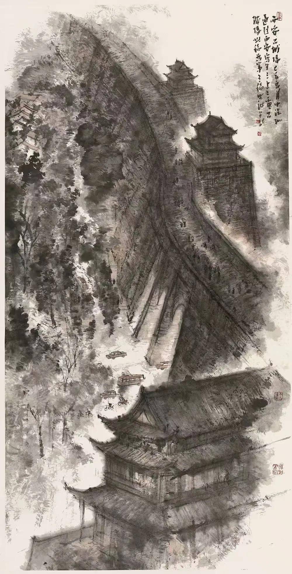 周波《西安古城牆》 136cmx68cm 紙本水墨設色 2019年