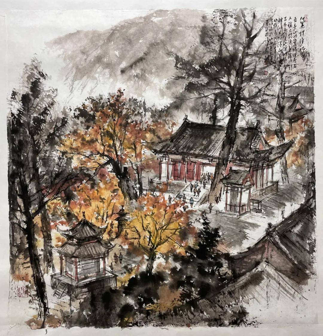 周波《黛螺頂秋色》 68cmx68cm 紙本水墨設色 2021年