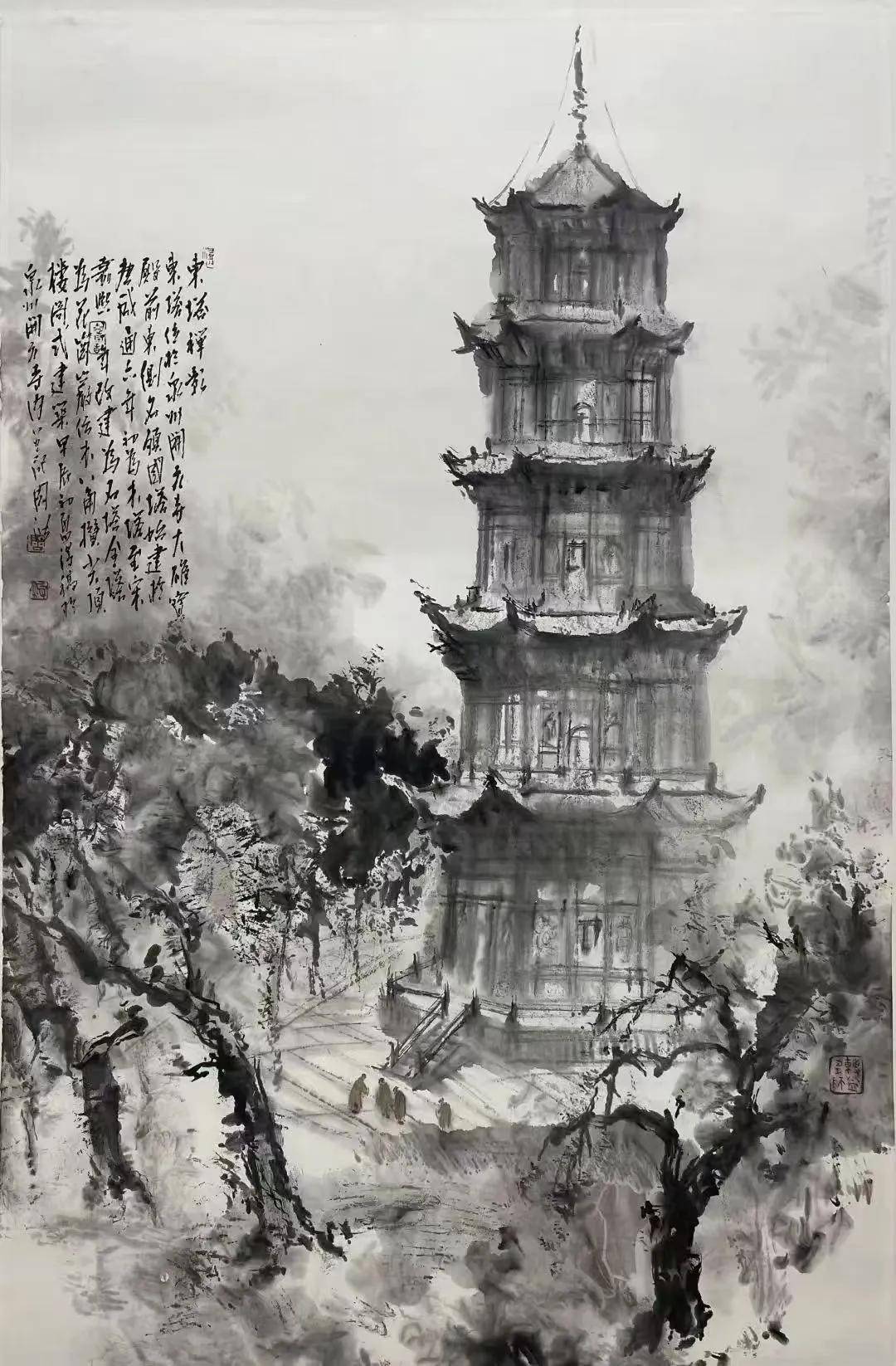 周波《東塔禪影》 46cmx68cm 紙本水墨設色 2024年
