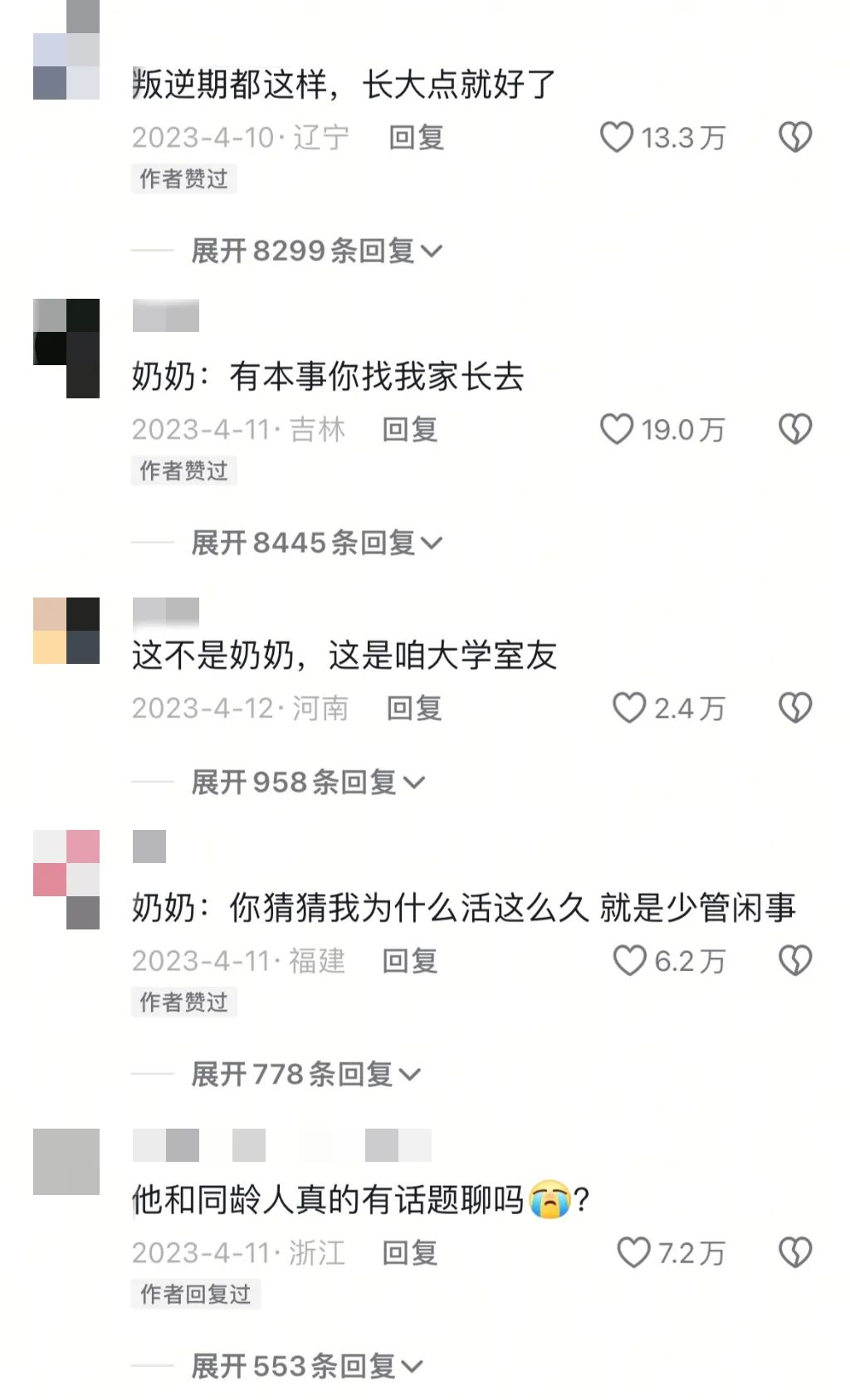 當小柒把阿珍的“叛逆”日常發佈在社交媒體平台,有關“網癮奶奶”的日常生活記錄迅速走紅,評論區反響熱烈,網友們紛紛調侃:
